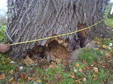 Höhlungen und Rissen im Stamm, von den Wurzelanläufen
