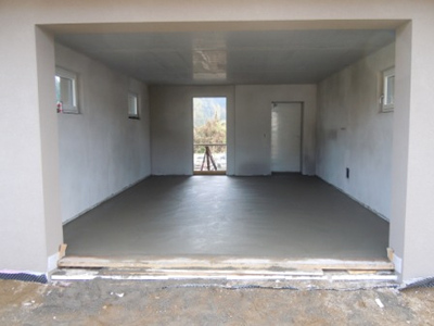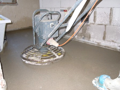 getrennte großflächige Fußbodenflächen aus Betonmörtel (Sand